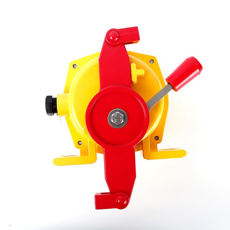 當現(xiàn)場發(fā)生緊急事故時,可接動開關轉臂上的鋼絲繩,啟動開關輸出一開關信號,用于告警或停機。型機有一警示牌,啟動開關時,警示牌翻轉呈垂直狀態(tài),故障排除后,按下警示牌,拉繩開關恢復工作狀態(tài)。