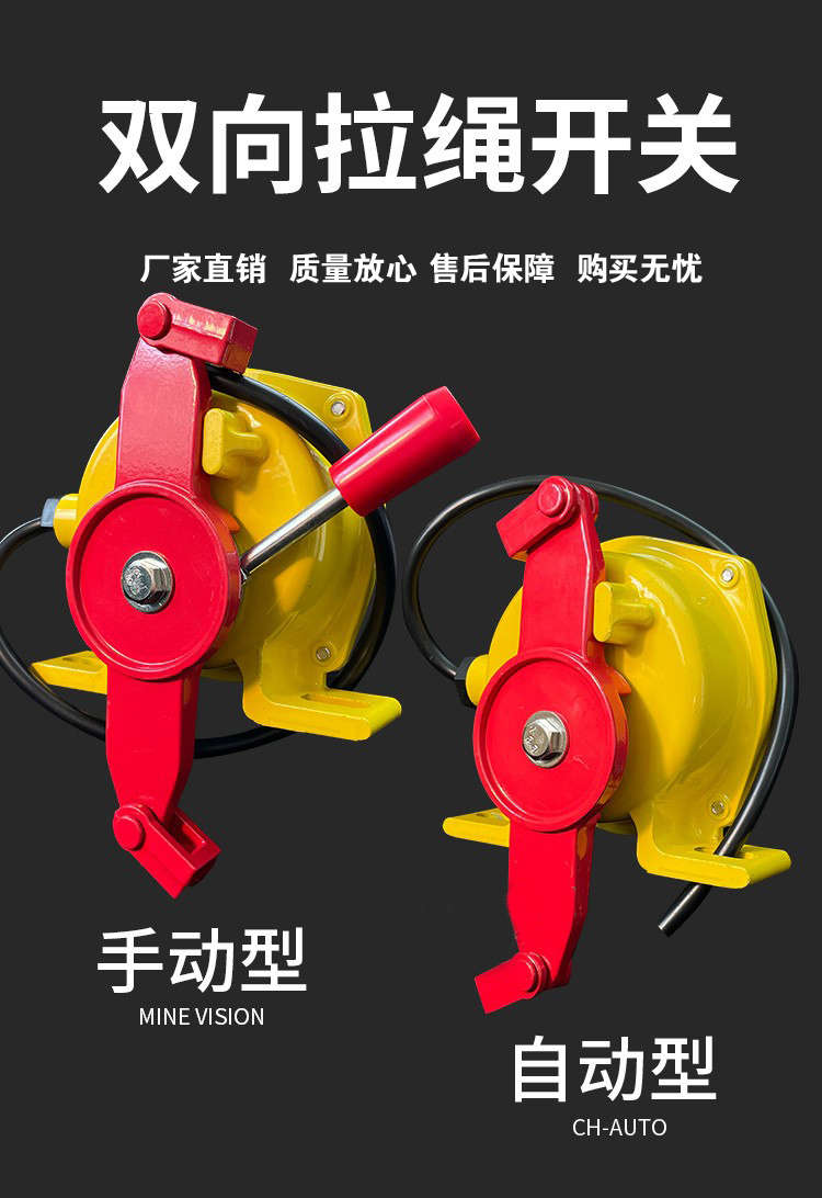• 拉繩開關(guān)廣泛用于鋼鐵、水泥廠、電廠礦山等具有帶式輸送機的廠礦,該產(chǎn)品安裝在膠帶輸送機兩側(cè),是用于膠帶輸送機緊急事故的一種保護開關(guān),在開關(guān)操作距離內(nèi)任何一點拉動鋼絲繩,切斷運行電路使全線停機,實現(xiàn)對膠帶機及人身的保護,它分手動型和自動型。