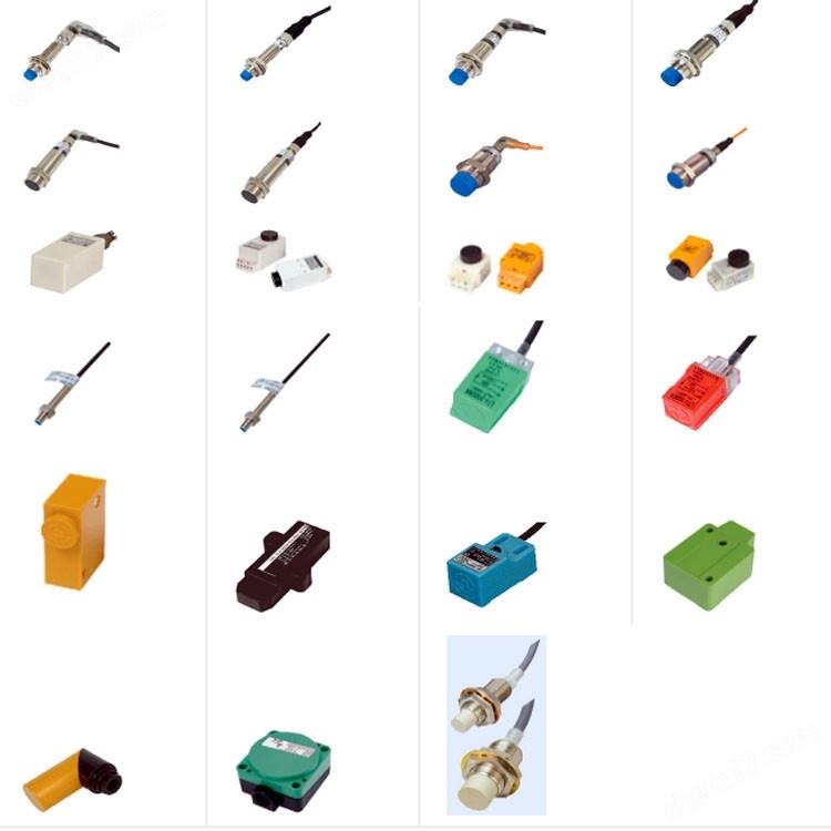 生產接近開關、電感式傳感器:金屬外殼,螺紋圓柱外形,直流2線、3線、4線、交流2線、交直流2線,黃色LED指示燈紅色LED指示燈, , 全螺紋接近開關、帶插接近開關、帶線的接近開關、方形接近開關、角柱型接近開關、平面型接近開關、直徑8mm接近開關、直徑12mm接近開 關、直徑18mm接近開關、直徑30mm接近開關,PNP接近開關、NPN接近開關。