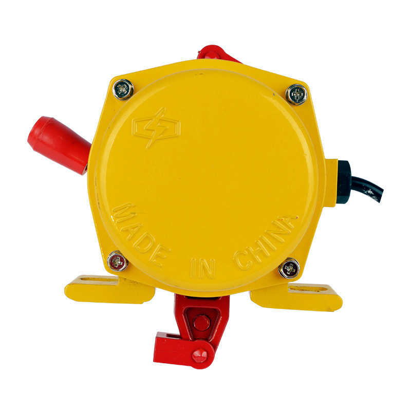 當(dāng)現(xiàn)場(chǎng)發(fā)生緊急事故時(shí),可接動(dòng)開(kāi)關(guān)轉(zhuǎn)臂上的鋼絲繩,啟動(dòng)開(kāi)關(guān)輸出一開(kāi)關(guān)信號(hào),用于告警或停機(jī)。型機(jī)有一警示牌,啟動(dòng)開(kāi)關(guān)時(shí),警示牌翻轉(zhuǎn)呈垂直狀態(tài),故障排除后,按下警示牌,拉繩開(kāi)關(guān)恢復(fù)工作狀態(tài)。