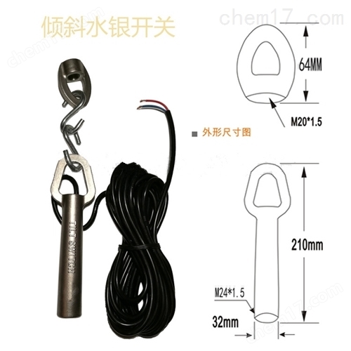傾斜開關垂直懸掛在受到物料的作用力后偏離垂直方向超過15°時,傾斜開關內的水銀開關動作,無論向哪個方向傾斜,常閉的觸點會斷開。當傾斜開關脫離物料時,傾斜開關回到垂直位置后,水銀開關接通。