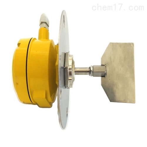 阻旋料位計(jì),工作原理為利用永磁電機(jī)帶動(dòng)葉片旋轉(zhuǎn)的器材。,當(dāng)被檢測(cè)的物料上升葉片位置時(shí),葉片轉(zhuǎn)動(dòng)受阻,將該阻力傳給接線盒內(nèi)的檢測(cè) 裝置,檢測(cè)裝置則相外輸出一個(gè)開關(guān)信號(hào),并切斷電源使葉片停止轉(zhuǎn)動(dòng).當(dāng)物料下降時(shí),葉片阻力消失,檢測(cè)裝置便依靠彈簧的拉力恢復(fù)到原始狀 態(tài),針對(duì)不同比重的物料可調(diào)整的拉力,比重大時(shí)彈簧的拉力調(diào)整*強(qiáng),反之則調(diào)整弱.阻旋料位開關(guān)是一種與固態(tài)物料包括粉狀、粒狀、膠狀等 物位控制器件;它具有密封好、過載能力強(qiáng)、輕便易裝、輸出接點(diǎn)容量大等特點(diǎn)。針對(duì)不同的比重物料可通過調(diào)整彈簧的拉力來實(shí)現(xiàn)、其接觸 物料部分全為不銹鋼材質(zhì);阻旋開關(guān)通常在化工、塑料、水泥、制藥、飼料、食品等等行業(yè)中得dao廣泛使用。